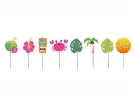 festa havaiana toppers camisa havaiana azul 2,5cm + folhinhos 5cm + palito 14unidades