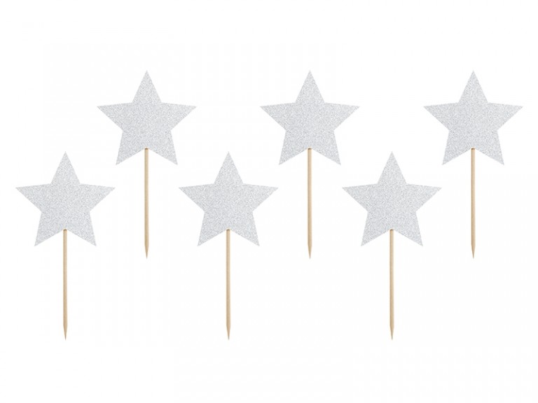 Palitos Estrelas Glitter Prateado 6unid