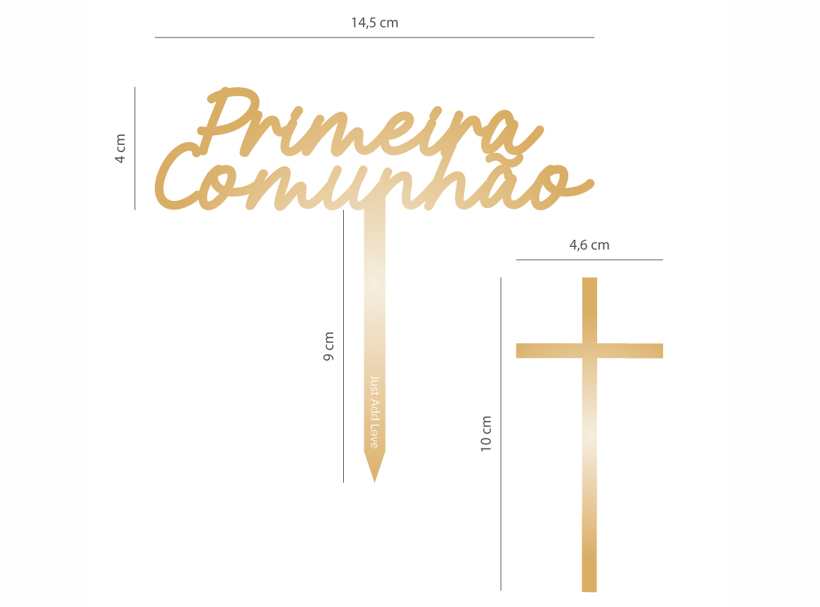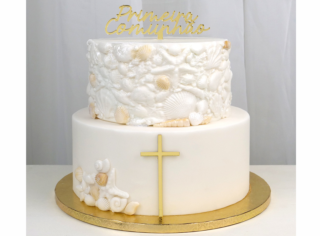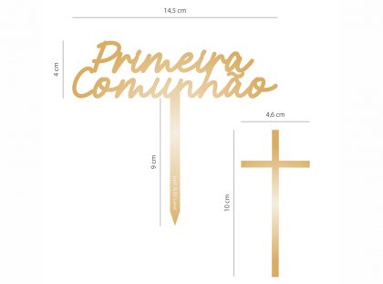 Topo Bolo 1ªComunhão Dourado