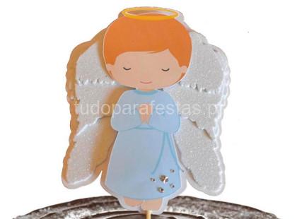 Topo Bolo Anjo Azul com Asas grandes 3D